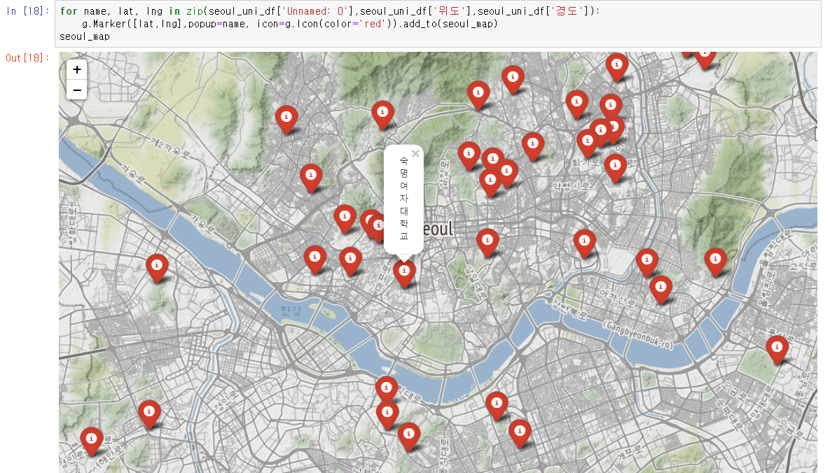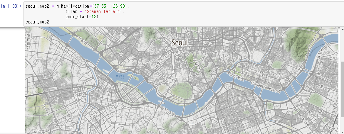 python에서 제공해주는 라이브러리로서 지도를 다루는 대표적인 라이브러리다.