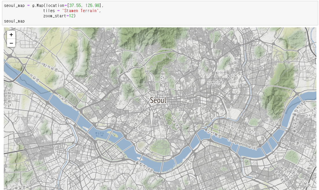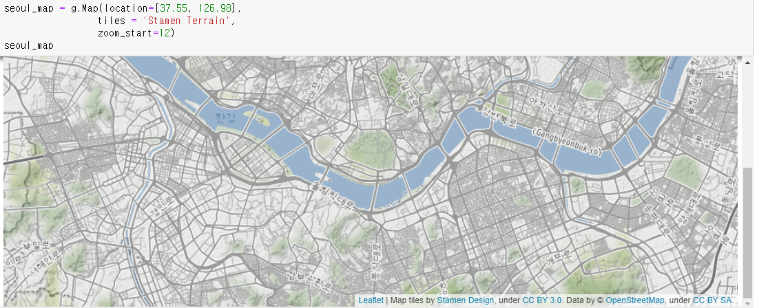 #Map이라는 함수에서 location으로 처음 화면이 나오는 부분을 설정해준다.