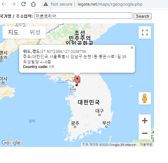 이것을 사용하기 위해서는 위도 경도를 알아야 한다. 네이버에서 검색을 하거나 구글맵을 사용하면 위도와 경도를 알 수 있다.