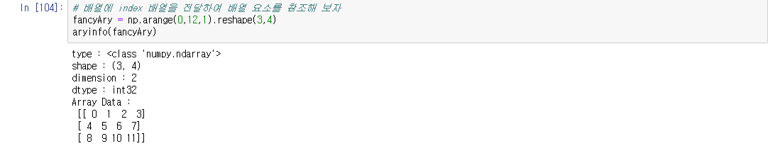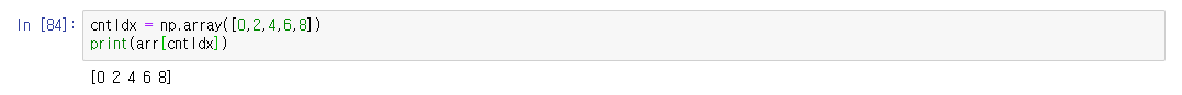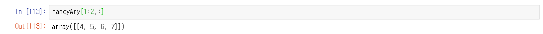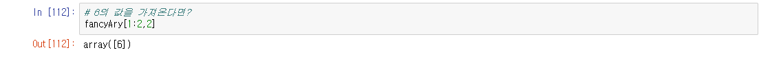 이 형태로 값을 가져오면 ([6]) 배열 타입으로 가져오게 된다. 이런 타입이 fancy indexing 이다.