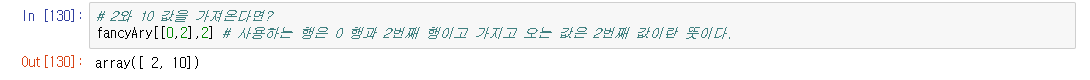 값에 boolean(True,False)가 들어가면 boolean indexing 이다.