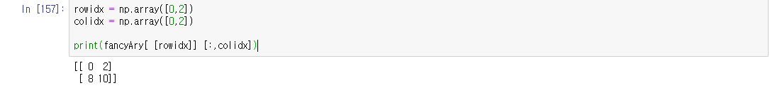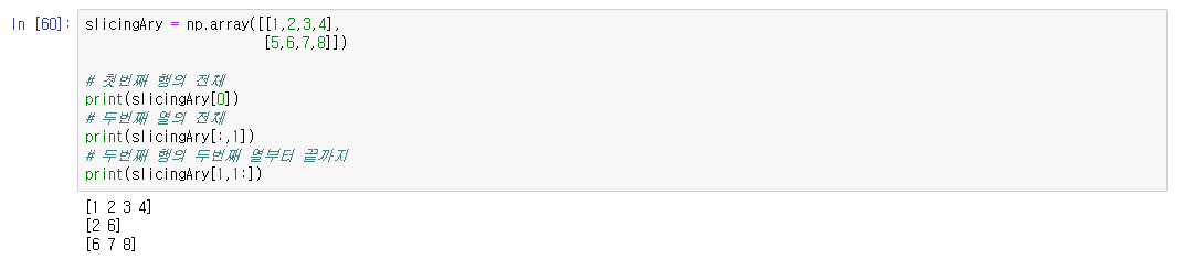 위와 같은 경우에는 sliceing 해서 값을 리턴 받는다. 이때는 차원이 하나 더 붙는다.