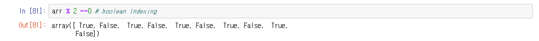 arr 를 연산으로 보고 이때 나온 배열이 boolean Indexing 구한다.