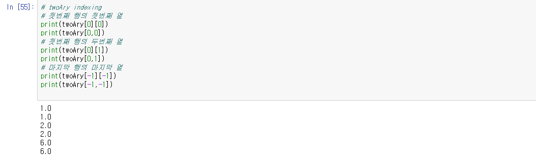 twoAry[0,0] 또한 마찬가지의 의미이다.
